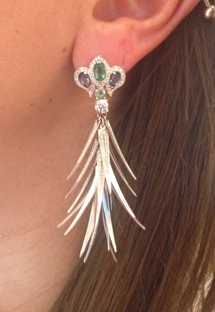 The stones. The design. The overall look. I love everything about these 18-karat white gold Paraiba tourmaline, emerald and diamond earrings from Caroline Chartouni.