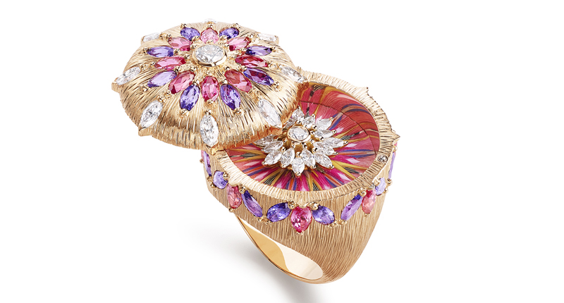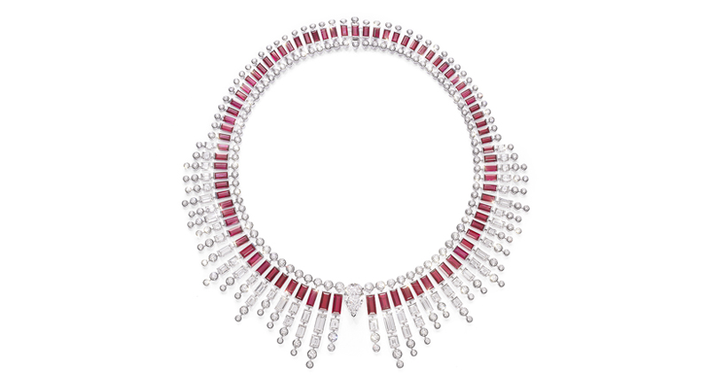 Sunlight Journey references the changing light of the Italian coast, as it transitions in hue from morning to night. Necklaces with vivid combinations of spinel, rubies and yellow diamonds, to name a few, marked the light’s warm intensity, while cooler sapphires and black opals lent a nod to the dramatically different colors of morning and night.