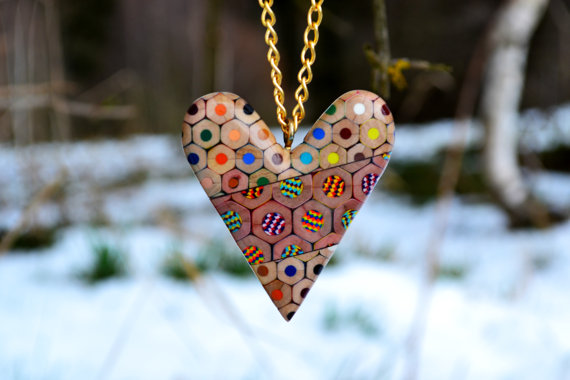 This necklace crafts colored pencils in a heart shape that is 6 cm high and 5 cm wide. It’s only $34.90.