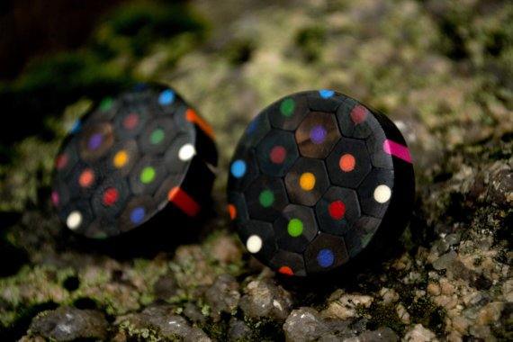 The brand, called Čarbičková, is composed of Anna Čurlejová and Vladimir Škarda and based in the Czech Republic, according to the site. The two take Koh-I-Noor (side note: what a great name for these pencils that will cross over into jewelry) and Blackwood brand colored pencils and cut them in different ways, creating either long lines of color or honeycomb patterns. They then use transparent lacquer to keep them together.
