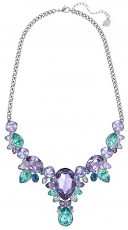 Of course, it couldn’t be a Swarovski story without a little color. The “Eglantine” necklace, inspired by aquatic flora, features an array of colored crystals in a palladium-plated metal ($299).
