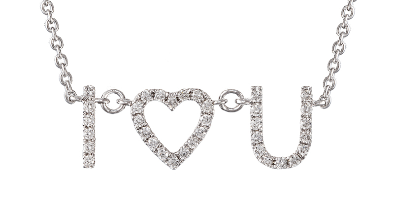 For shoppers who don’t want to wait for customization turn-around time, retailers can stock up on pre-selected phrases adorned with diamonds like an “I Love You” pendant from Djula or one of Roberto Coin’s “Emoji” necklaces, which portray several different moods.