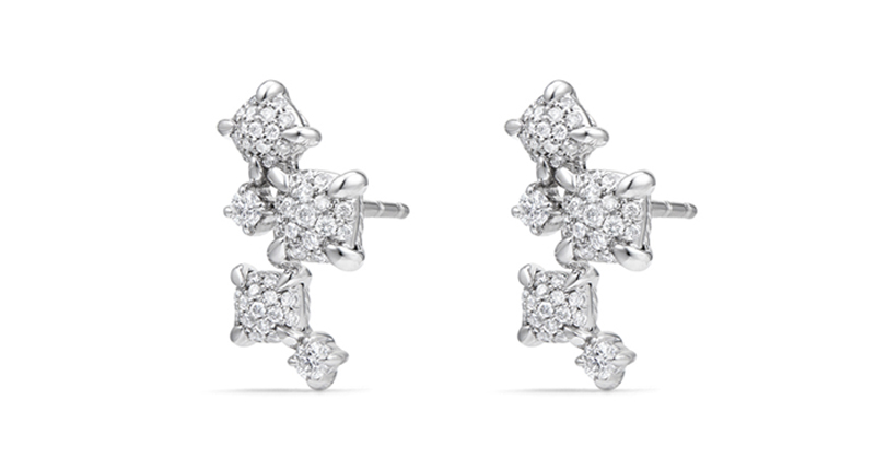 Stud earrings are more interesting with multiple diamonds and a little design, like in Hearts On Fire’s petal studs, or in a climber earring, like the ones from David Yurman.