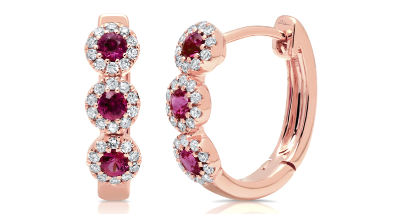 S. Kashi and Sons makes a flattering rectangular version of the huggie, while the bright rubies on a pair from Shy Creation lend a pop of color.