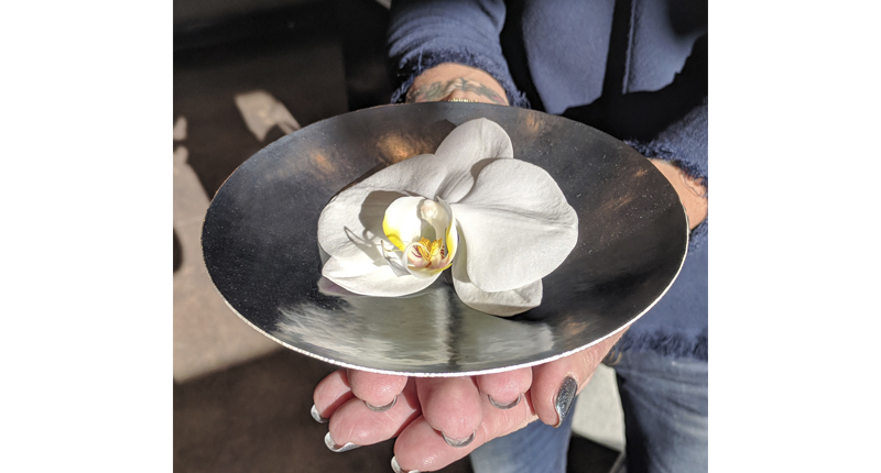 The bowls are hand-forged in Reed’s Boulder showroom at the newly renovated forging space, where visitors can view Todd Reed artisans crafting silver into small bowls accented with diamonds.