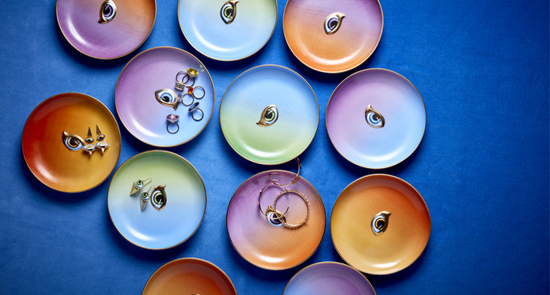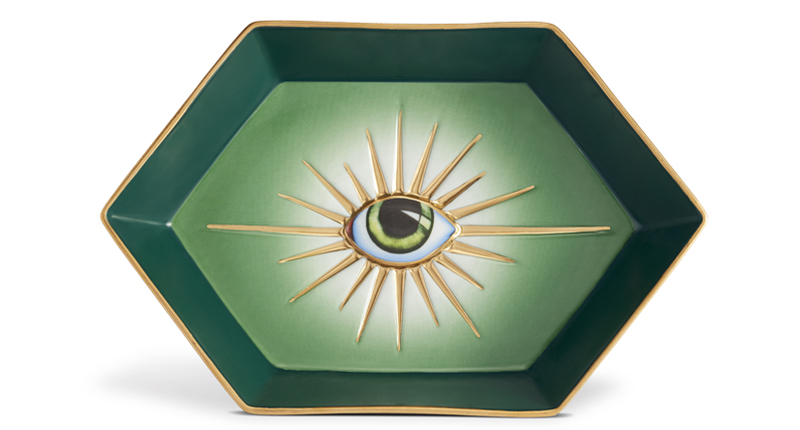 The Greek jewelry designer’s signature evil eye now adorns plates, jewelry boxes and candles.