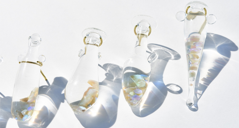 The brand’s limited-edition glass vessels contain opals that didn’t make the cut for jewelry.
