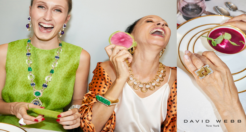 David Webb’s fall/winter ad campaign lensed by Juergen Teller features a group of the brand’s boldest jewels, perhaps none quite so captivating as the dramatic sautoir model and fashion royalty Anna Cleveland dons (seen at left in the picture below).
