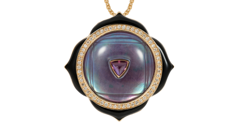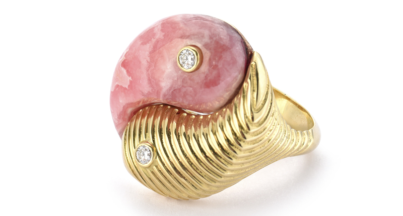 “The way that designers use inlay has continued to evolve, most notably with Retrouvai’s Compass collection—we especially love the ‘Grandfather’ compass, which rotates; Jacquie Aiche’s exquisite inlay eye and galaxy pieces; and Marla Aaron’s inlay lock series,” says Teichman. “We expect to see a lot more inlay in the future.”