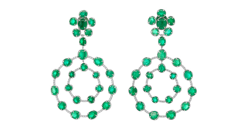 It ties in the mythology and the people of the time through five sub-collections—Chakana, Atocha, Muisca, Royal Orb and Verity—that use cabochons, tumbled emeralds and emerald slices as well as diamond accents and 18-karat gold.