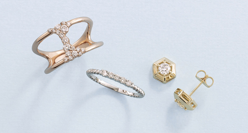 “Modern Brilliance” comprises 50 styles—earrings, necklaces, rings and bracelets—available in 14-karat white, yellow or rose gold and featuring lab-grown diamonds.