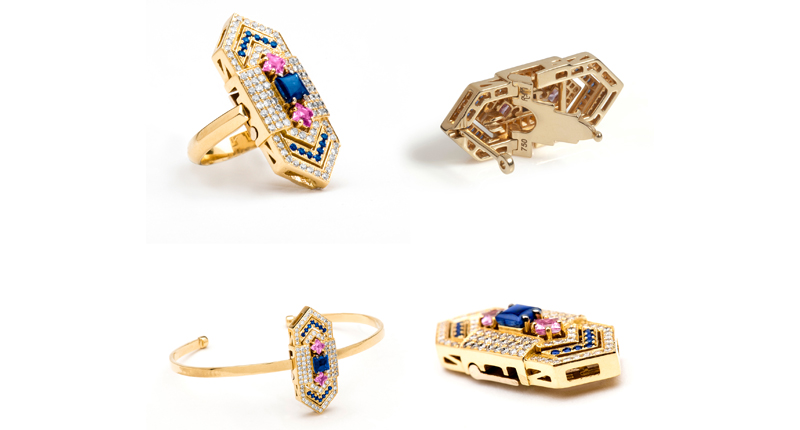 The above “tag” can be worn multiple ways, attached to an R.Y.M. bracelet, pendant, earring or ring. Innovative without sacrificing attention to design, I think R.Y.M. is going to be a big hit at Couture.