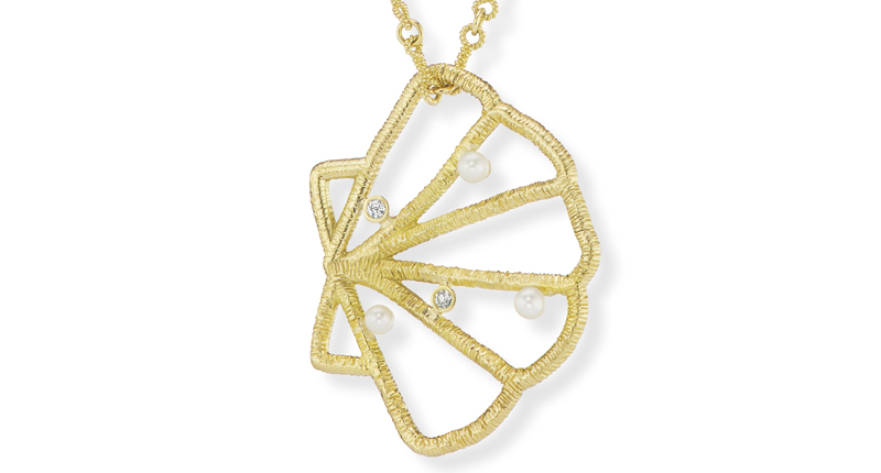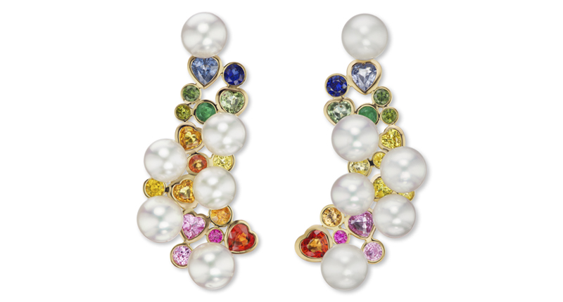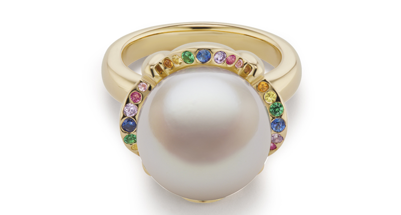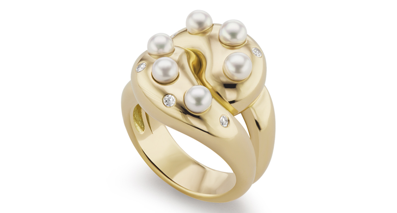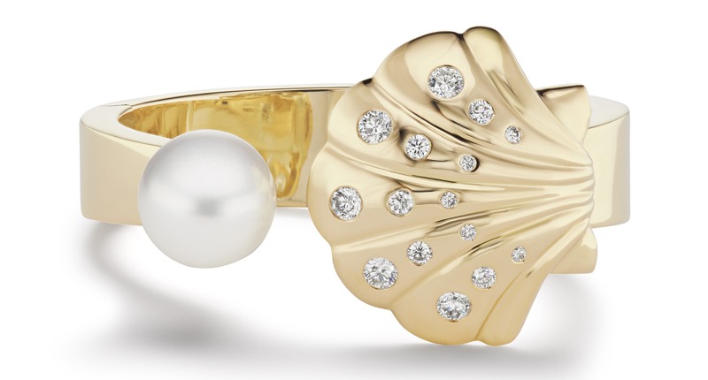 More abstract pieces also figure into the mix, many of which incorporate South Sea pearls, whether adorning the designer’s signature “Knot” ring or nestled in the curve of hoop earrings, new for the brand.