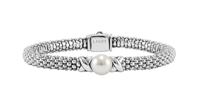 This is Lagos’ caviar and pearl sterling silver bracelet from the Luna collection ($375) Lagos.com