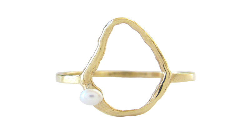 Misa Jewelry’s “Oysterette” ring, with a freshwater pearl set in 14-karat yellow gold ($425) MisaJewelry.com