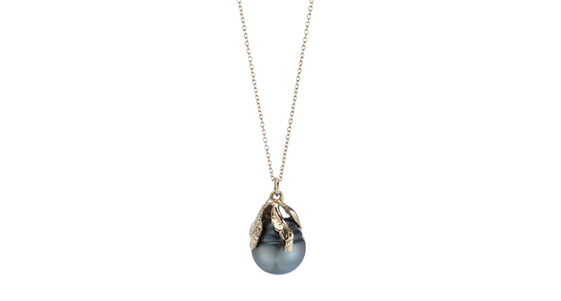Mara Carrizo Scalise’s Tahitian pearl and 14-karat gold leaf necklace ($2,970) MaraMCS.com