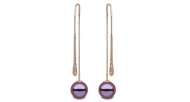 These ear threaders from Yoko London feature 12 to 13 mm natural “radiant orchid” freshwater