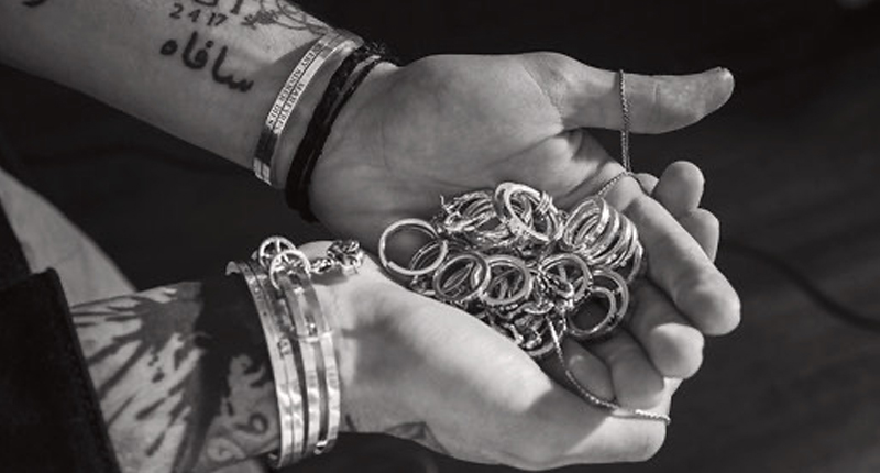 Martyre, French for “martyrdom,” is full of Gothic-inspired medallions, chunky rings, ID bracelets and hoop earrings depicting angels, hearts and hands, some emblazoned with phrases like “Don’t Forget Me” and “Every Sinner Dies a Saint.”