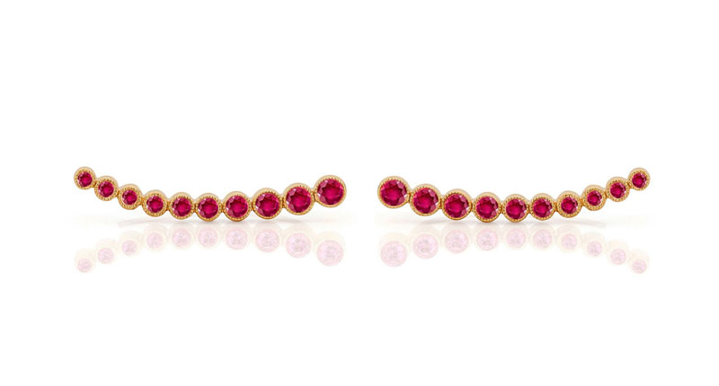 These EF Collection Floating Multi Bezel ear cuffs feature 10 bezel-set rubies each varying in size and set in 14-karat yellow gold ($875 each; sold separately)
