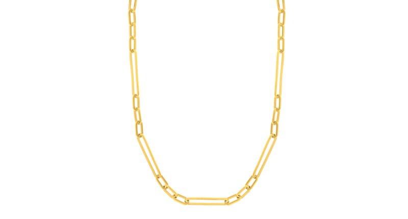 The design is a simple one with long, sleek links that resemble the shape of a paper clip. Paper clip chains have been popping up increasingly over the past six months, and now you can’t scroll far into your Instagram feed without coming upon a drool-worthy piece of jewelry with the coveted links.