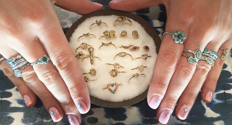 Drake has beautiful stacking rings that are perfect for an entry-level purchase, plus exquisite stone-focused, larger pieces for the serious customer.