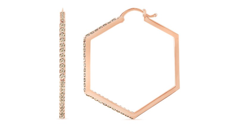 A pair of 14-karat rose gold “Bardot” huggie earrings set with light brown diamonds from the new Brilliant Earth x Diamonds That Care collection ($990).
