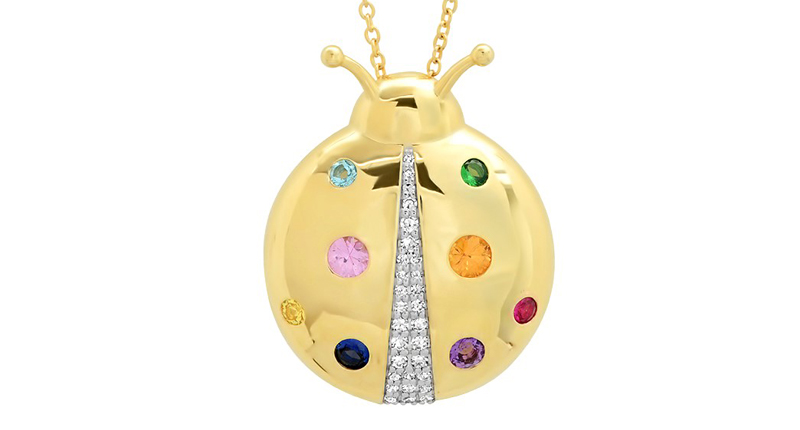Deeply personal but completely joyful, this “Mama Ladybug Necklace” is rendered in 14-karat yellow, white or rose gold with diamonds set in 14-karat white gold, and accented with ruby, sapphires, emerald, amethyst and diamonds on the dangling chain.