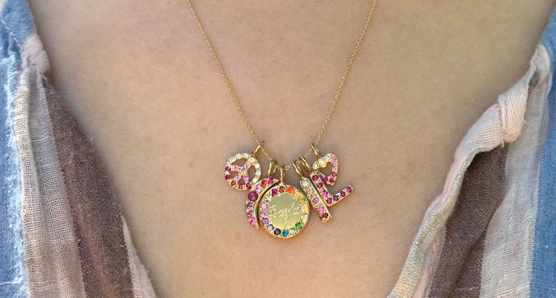 Pieces from Elisa Solomon Jewelry’s charm collection allow customers to choose the gold and stones, while some, like the “Custom Circle Charm” allow for hand engraving.