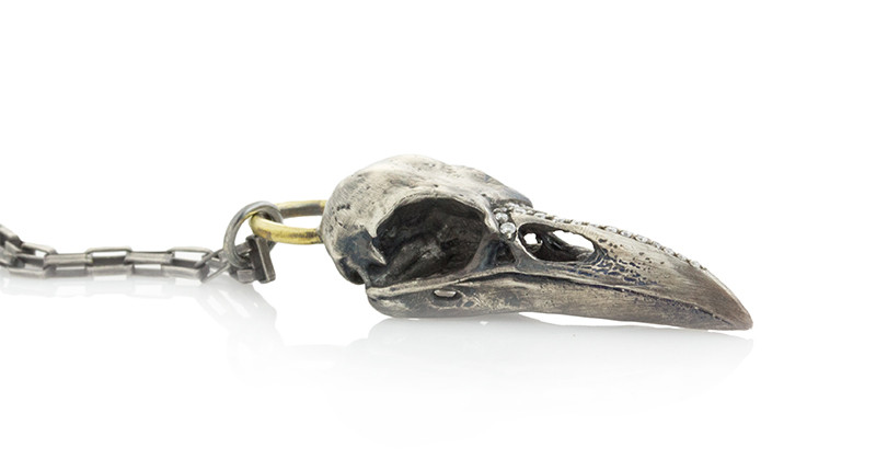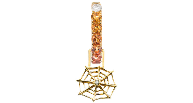 Skulls, bats, skeletons, ghosts, pumpkins, daggers, spiders, and spider webs become works of art in silver, gold, diamonds, and colored gemstones.