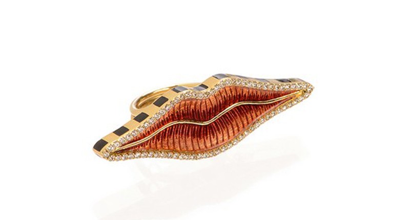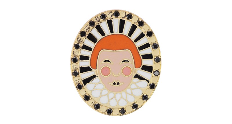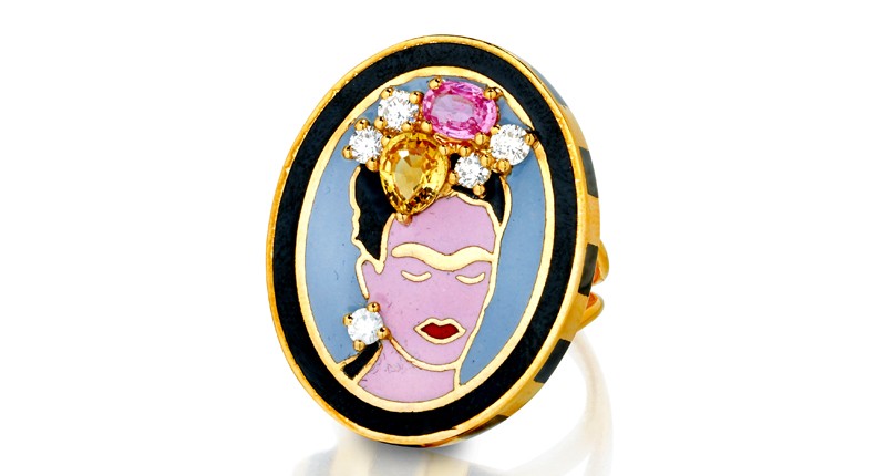 Dyment was arguably one of the original and visually loudest arbiters of precious jewelry with a sense of humor, be it a cocktail ring depicting Frida Kahlo’s face (one of Dyment’s favorite inspirational subjects) or a playful Rococo-feeling girandole earring.