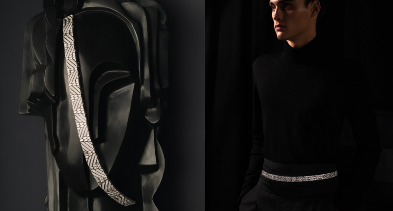 Providing a more approachable and lighthearted attitude to haute joaillerie is a diamond chevron-pattern jewel set on a ribbon. Its suggested uses include as a belt with a man’s tuxedo, as a headband or choker for a woman, or as a set of two unisex bracelets.