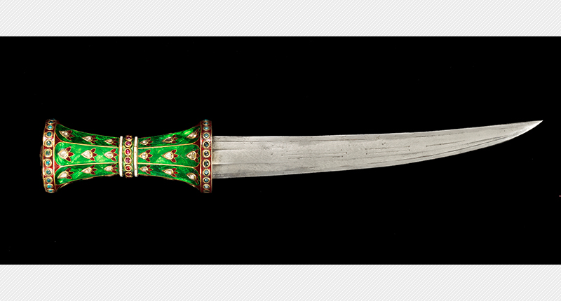 Another highlight of the auction is a jewel-encrusted dagger, the hilt of which is a type rarely produced in Mughal India, according to Bonhams, and can be compared to 18th century Persian daggers of similar form.