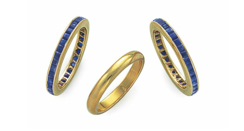 A set of Van Cleef & Arpels rings--two featuring calibré-cut sapphires and one solid 18-karat gold--sold for $16,250.