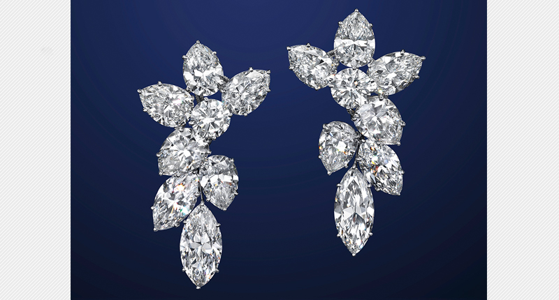 There also was a pair of diamond ear pendants by Harry Winston, each featuring a suspended cluster of marquise and pear-shaped diamonds attached to a circular and pear-shaped diamond surmount, that sold for $487,500, and a diamond cluster brooch that soared above its highest pre-sale estimate ($150,000) to sell for $223,500.