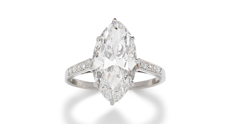 Also among the top lots will be a piece perfect for old-cut diamond lovers: A 4.61 carat old marquise-cut type IIb diamond single-stone ring that could sell for between $102,700 and $128,400.