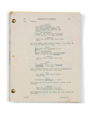 One hundred and forty pages long, the script includes deleted scenes and annotations from Hepburn, including, for example, a note on page 114, in which the script directs her to say, “but I do love Jose,” but Hepburn suggested changing it to, “I am mad about Jose.”