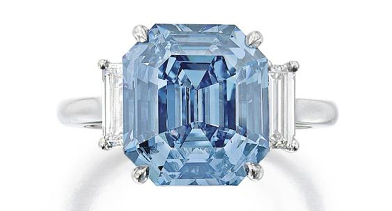 They were followed by an emerald-cut fancy vivid blue diamond weighing 5.69 carats, which garnered $15.1 million, and a Piaget ring featuring a modified rectangular brilliant-cut fancy intense purplish pink diamond weighing 7.04 carats that sold for $13.2 million.