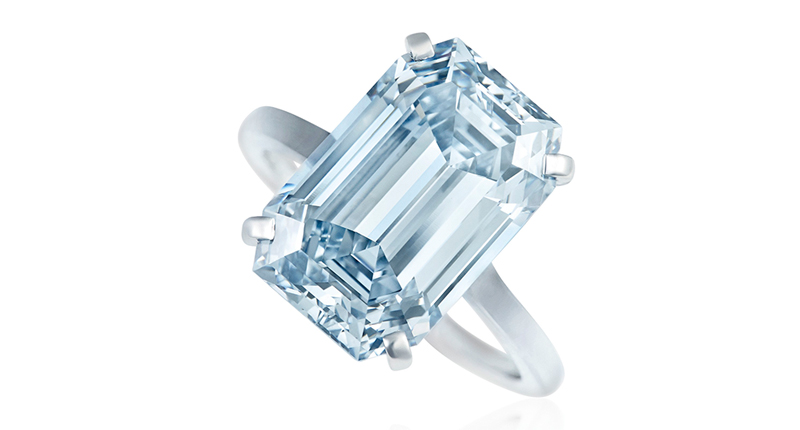 Rounding out the top five were La Légende,” a 92-carat heart-shaped diamond suspended from a string of cultured pearls by Boehmer et Bassenge that garnered almost $15 million; “Le Grand Mazarin,” a light pink diamond weighing 19.07 carats once belonging to a number of royals, which sold for $14.5 million; and an 8.67-carat rectangular-cut VVS1, potentially internally flawless fancy intense blue diamond that went for $13.2 million.
