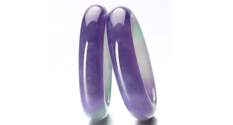 The jewelry auction also will include two fine jadeite bangles displaying hues of both lavender and green that  blend seamlessly. Possessing strong saturation and fine translucency, the pair will be sold separately, with estimates of $665,000-$895,000 (left bangle) and $640,000-$895,000 (right bangle).