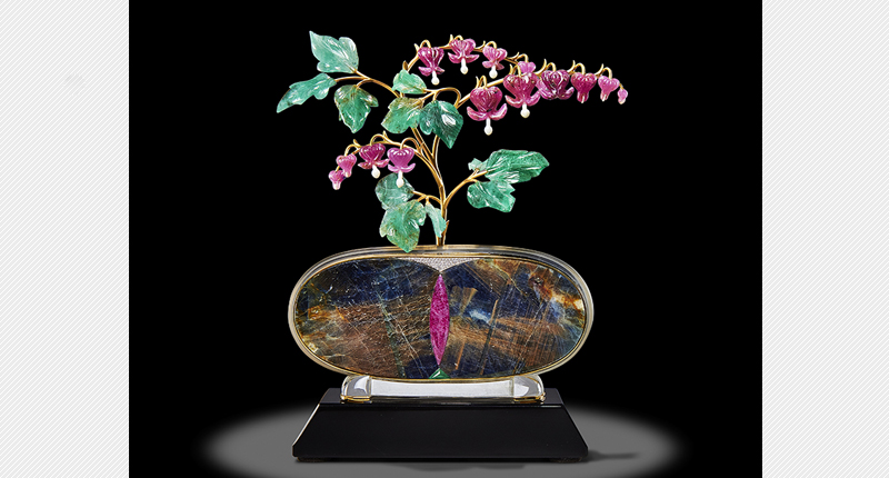 The sale also features the “Bleeding Hearts” gold flower study (seen above) by renowned lapidary artist Manfred Wild.