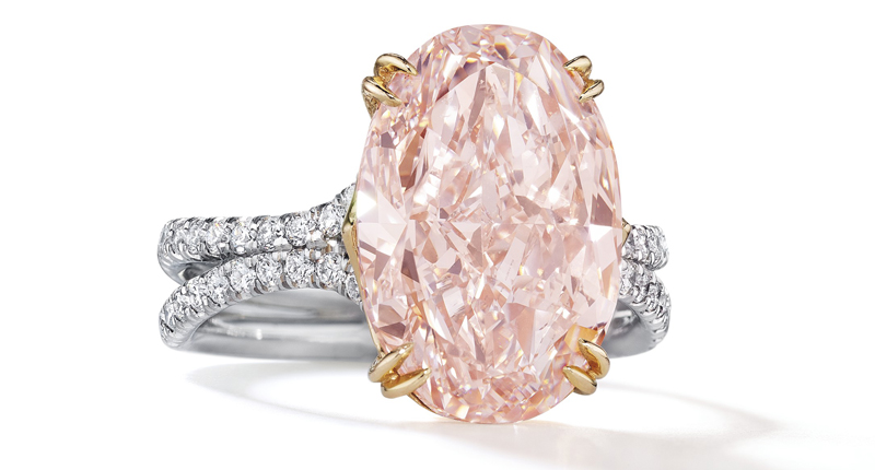 This 6.11-carat oval-shaped fancy pink diamond ring is predicted to sell for between $1.2 and $1.5 million.