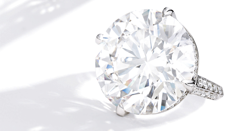 Other sale highlights included the above 30.4-carat, H color, VS2 clarity round brilliant diamond ring from Betteridge, which sold for $1.16 million, and a pair of Harry Winston emerald and diamond pendant ear clips that feature two pear-shaped emeralds weighing more than 10 carats each. It sold for $764,000.