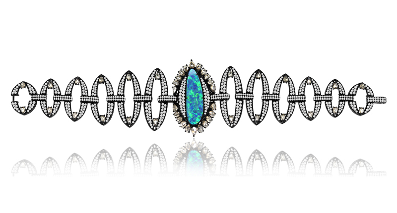 Houston, Texas-based designer Arpita Navlakha has outdone herself with this 6.5-carat Australian opal, 13-carat total weight diamond and 18-karat black gold choker that combines the two elements she knows best: detail and color.