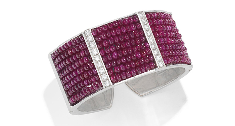 Another notable piece is a white enamel and gem-set cuff bangle by Verdura, estimated at between $26,000 and $39,000. The limited-edition piece was featured in “The Power of Style: Verdura at 75” exhibition in New York in 2014.