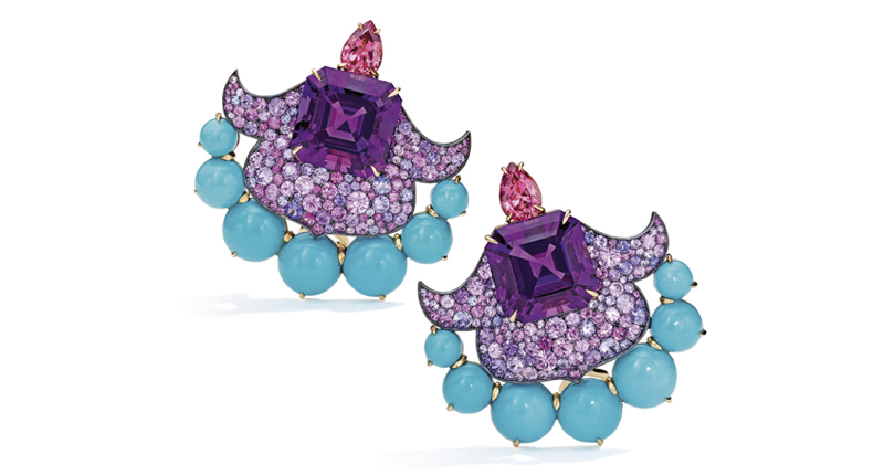 Their amethyst, turquoise, spinel and multi-colored sapphire earclips (seen above) were expected to sell for between $20,000 to $30,000 but ended up garnering $37,500 at the jewelry auction.