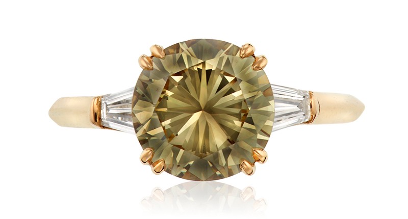 Other highlights include a 2.46-carat fancy brownish greenish yellow diamond flanked on either side by tapered baguette-cut diamonds and set in a ring expected to sell for between $10,000 and $15,000.