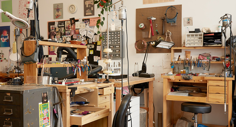 Specifically for the resident’s program, the studio needs a standard jeweler’s bench, flex shaft, handpiece, stand, jeweler’s lamp, bench top organizer, jeweler’s chair, rawhide and/or planishing hammer, mandrels, and a jeweler’s saw frame.
