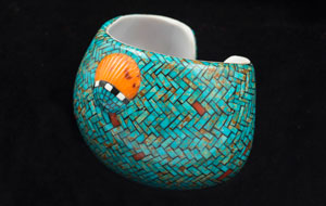 “Turquoise stands for water and for sky, for bountiful harvests, health and protection. Blue-green symbolizes creation and the hope for security and beauty. These ideas were so important that if the stone was not available, its color was represented through other methods,” said Maxine McBrinn, curator of archaeology at the Museum of Indian Arts and Culture.