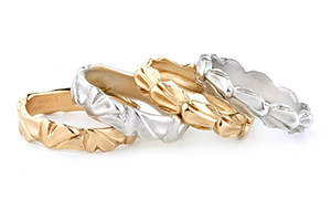 Shennan currently creates in two distinct lines. The Gingko collection features the motif of the gingko leaf--a symbol of longevity, hope and peace--and its various shapes and forms in gold and sterling silver, accented with colored stones.