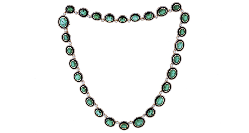 Could it be the idea of 23.06 carats of emeralds wrapped lovingly around the neck? The diamond and rose gold accents as well? It doesn’t matter; I love it all.